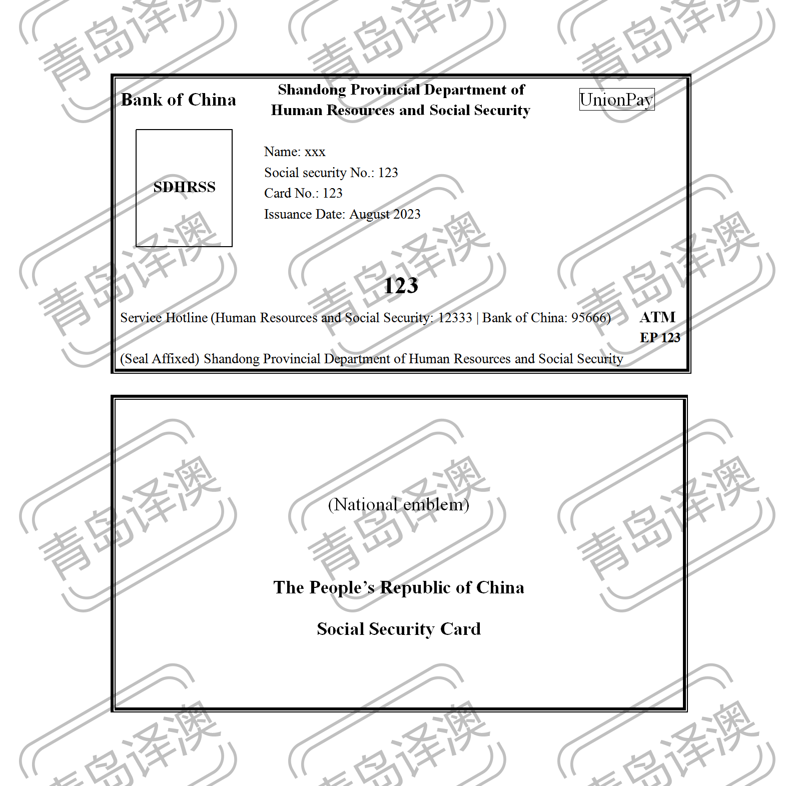 【青岛翻译公司】青岛译澳翻译——社会保障卡翻译案例 中译英