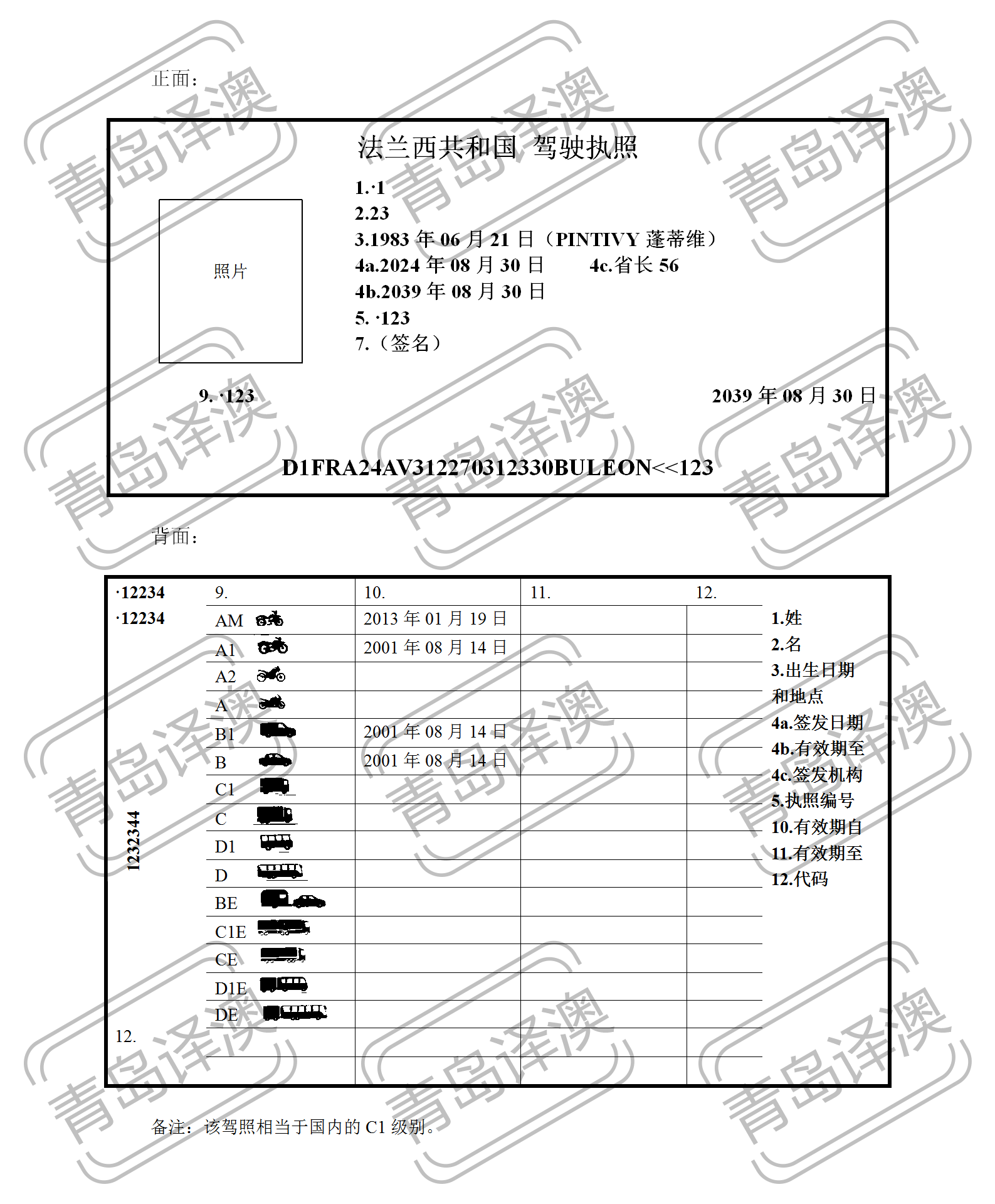 【青岛翻译公司】青岛译澳翻译——法国驾照翻译案例 法/英译中